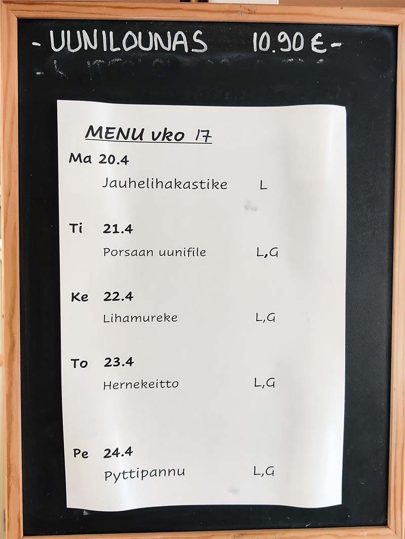 Lounas tarjolla arkisin klo 10 - 14, tai niin kauan kuin ruokaa riittää.